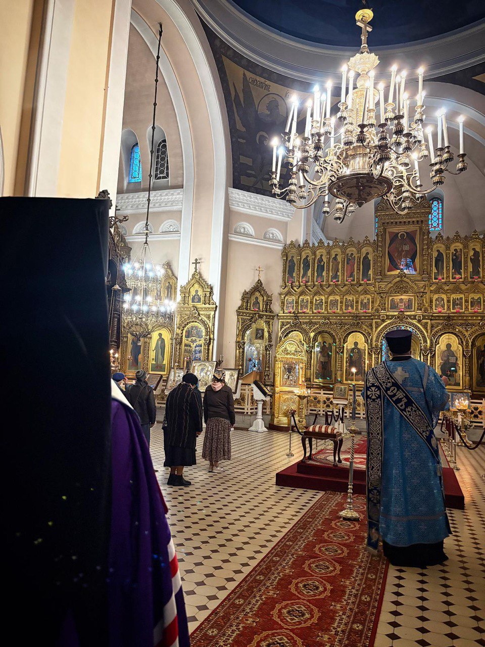 13 октября 2025 года в Нарвском Воскресенском кафедральном соборе в канун праздника Покрова Пресвятой Владычицы нашей Богородицы и Приснодевы Марии было совершено Всенощное бдение с литией