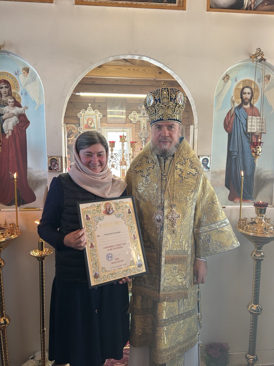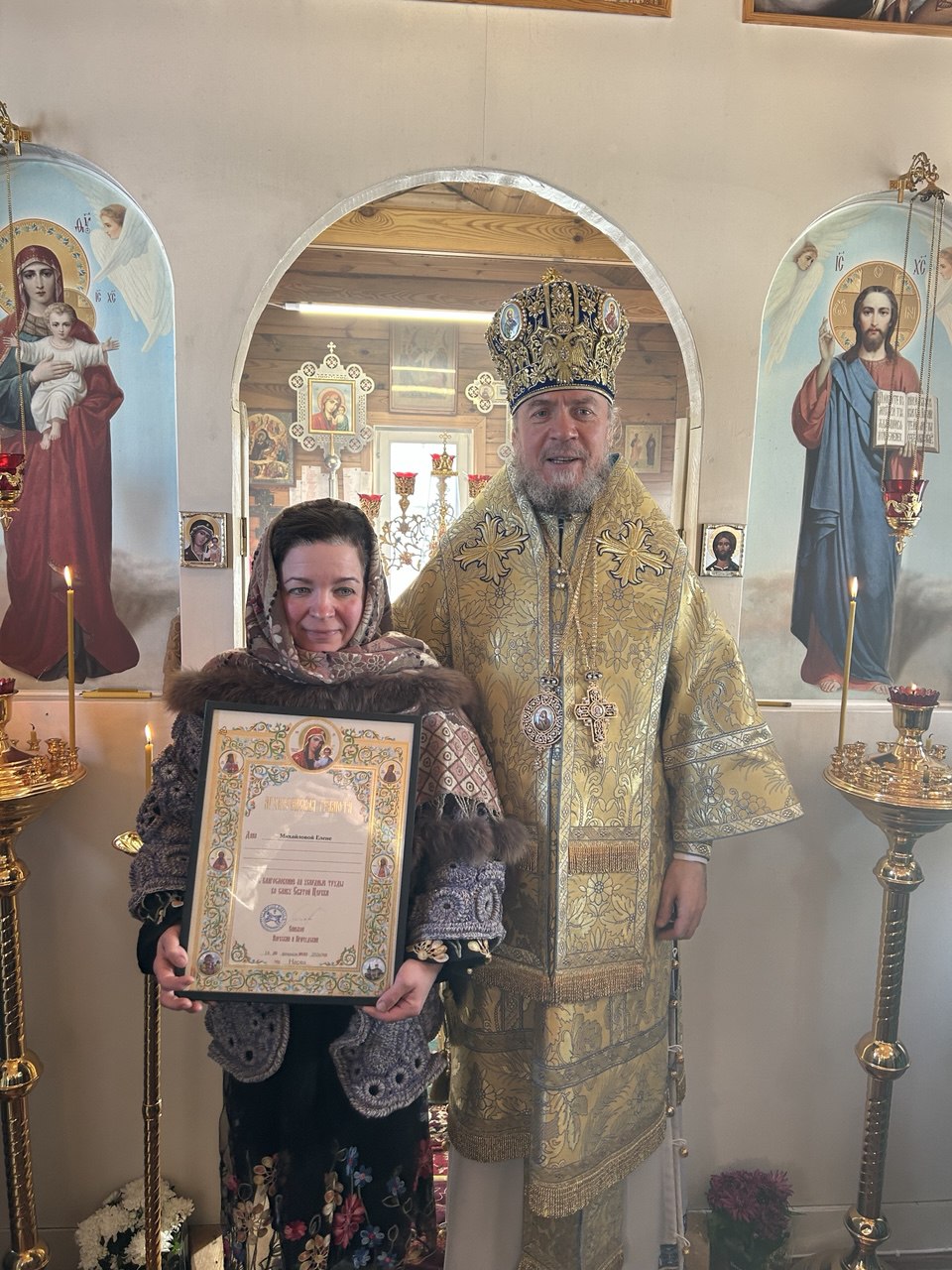 По окончании Божественной Литургии к епархиальной награде были представлены труженники храма.