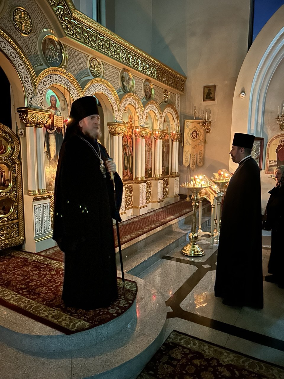 25 февраля 2026 года в храме Двенадцати Апостолов во вторник первой седмицы Великого поста было совершено Великое повечерие с чтением Великого покаянного канона преподобного Андрея Критского, которое совершил епископ Нарвский и Причудский Лазарь.