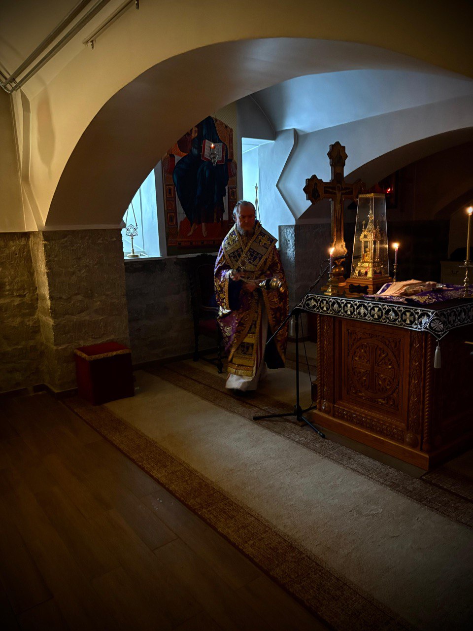 27 февраля 2026 года в пятницу 1-й седмицы Великого поста в Нарвском Воскресенском кафедральном соборе было совершено уставное богослужение и Литургия Преждеосвященных Даров, которую возглавил епископ Нарвский и Причудский Лазарь.